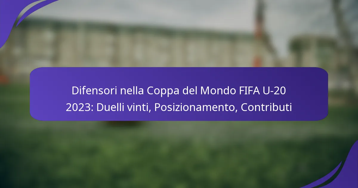 Difensori nella Coppa del Mondo FIFA U-20 2023: Duelli vinti, Posizionamento, Contributi