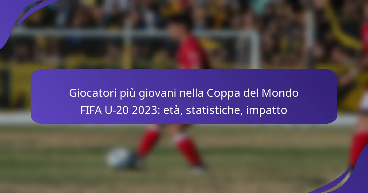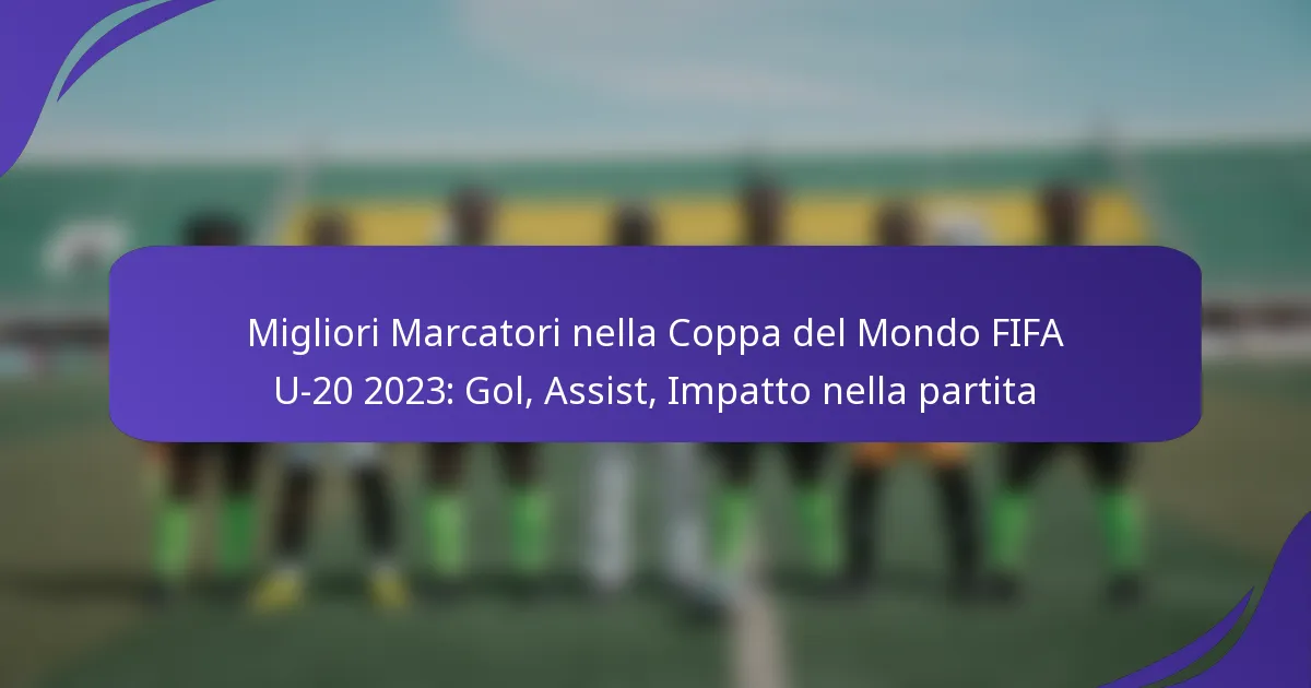 Le statistiche e le classifiche dei giocatori della Coppa del Mondo FIFA U-20 2023 evidenziano i contributi individuali ai successi delle loro squadre. Le metriche chiave includono gol segnati, assist forniti e minuti giocati, che aiutano a identificare i giocatori di spicco durante il torneo. Queste statistiche possono influenzare le future opportunità di carriera per i giovani talenti.