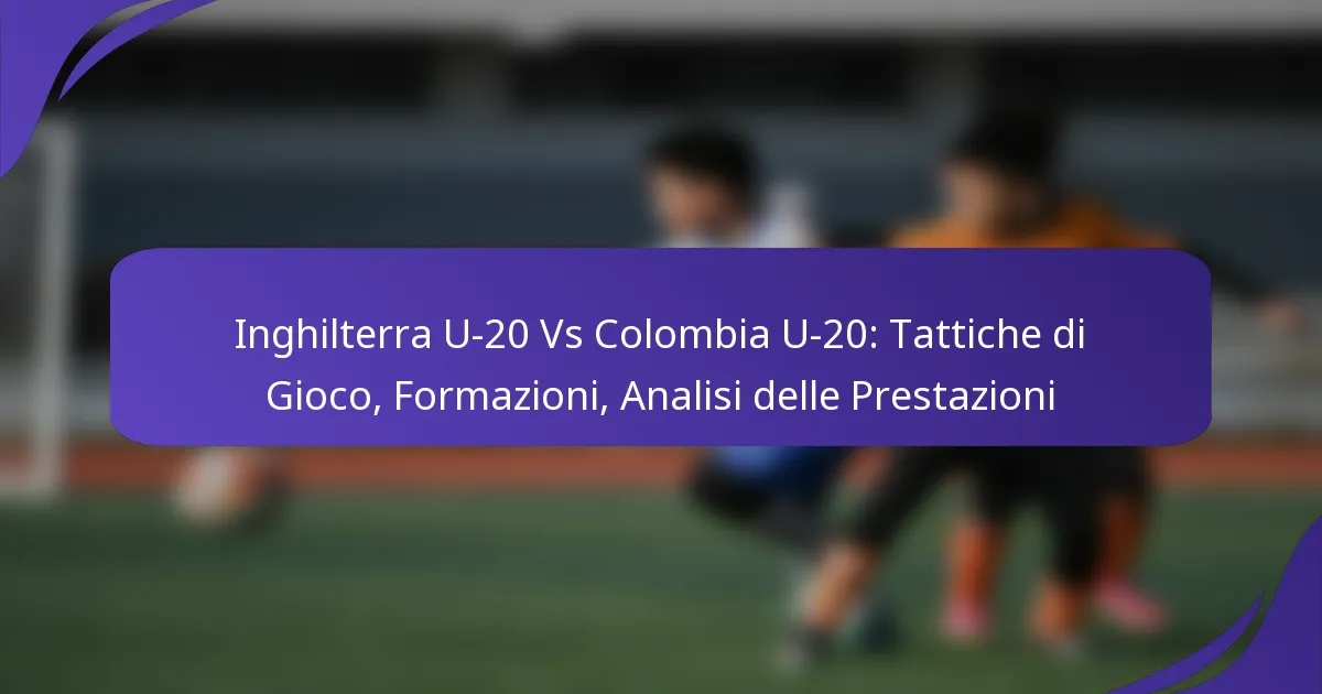 Inghilterra U-20 Vs Colombia U-20: Tattiche di Gioco, Formazioni, Analisi delle Prestazioni